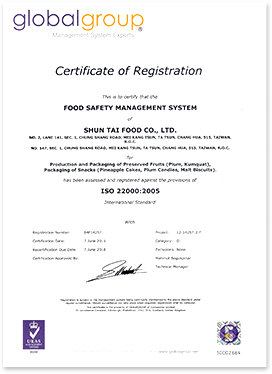 During 1984-1995 period SHUN TAI FOOD CO., LTD. has been awarded by the Ministry of Economic Affairs of Republic of China many times as the “Outstanding Exporter” in recognition of its outstanding performance in the field. The company has been further accredited for “ISO22000 & HACCP & HALAL” to endorse the superior quality.